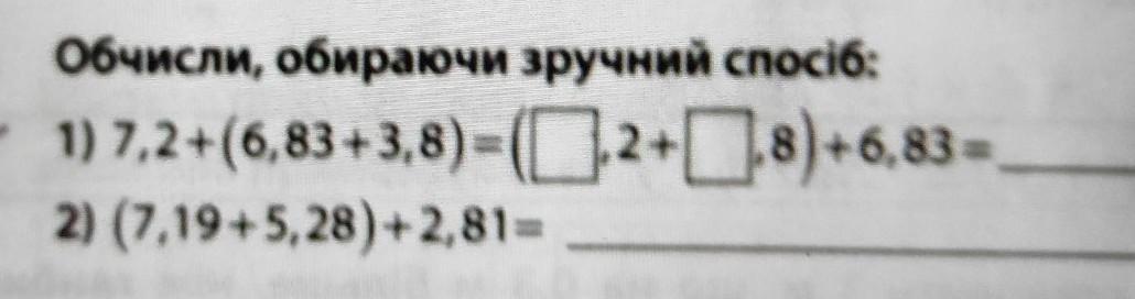 7,2 + (6,83 + 3,8) = (7,2 + 3,8) + 6,83 = 11 + 6,83 = 17,83