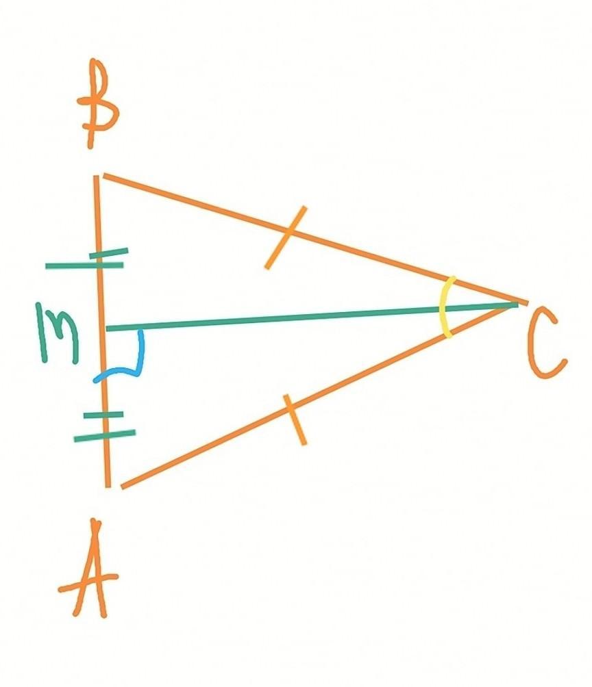 СМ является медианой,высотой и биссектрисой, проведенной к основанию.