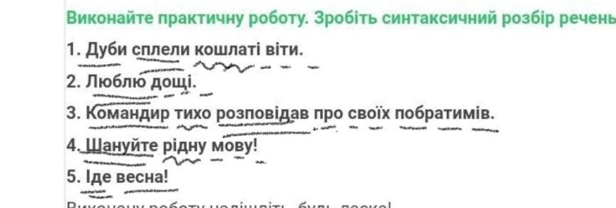 5) Речення розповідне, повне, неокличне, просте, двоскладне, непоширене, не ускладнене