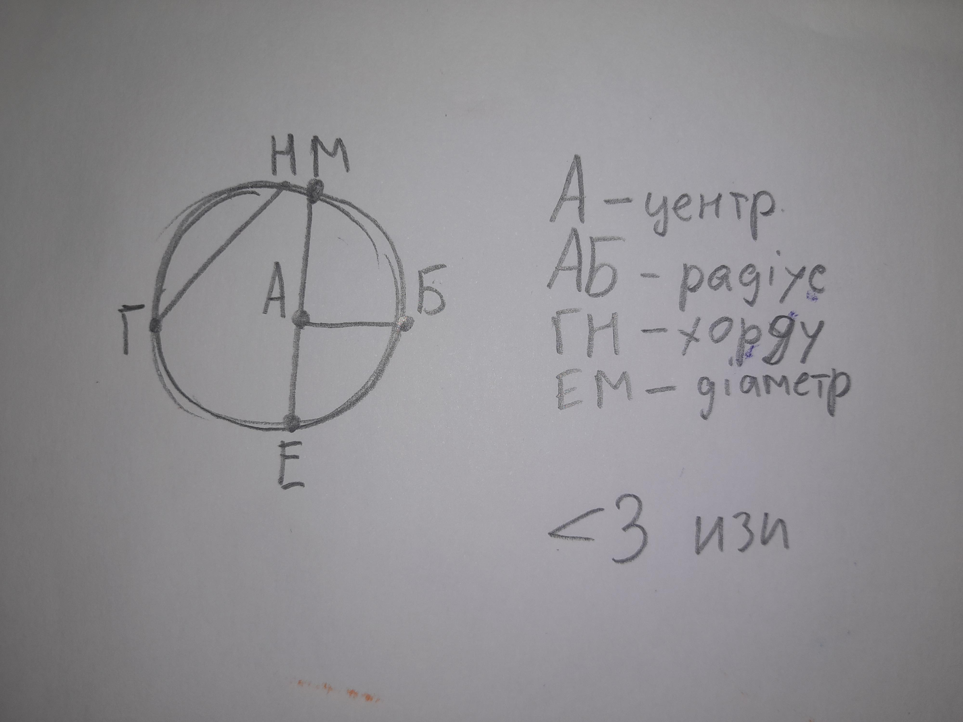 накресліть коло, позначте центр кола, провести радіус, діаметр і хорду та зробіть відповідні записи