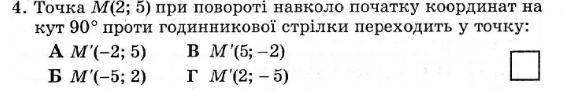 точка m(2; 5) при повороті навколо початку координат на кут 90 градусів проти годинникової стрілки переходить у точку...