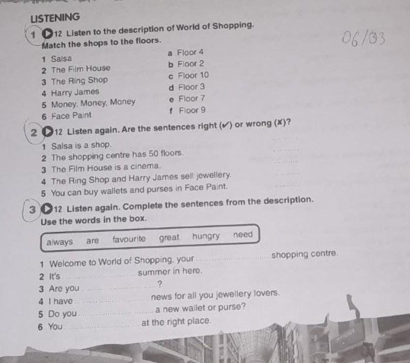 Задание на listening , еще бы аудио тогда , ищите ответы в готовых домашних заданиях по учебникам