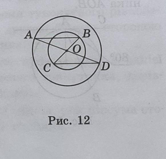 (За рисунком 12 доведите что АВ||СD, О-центр кола)