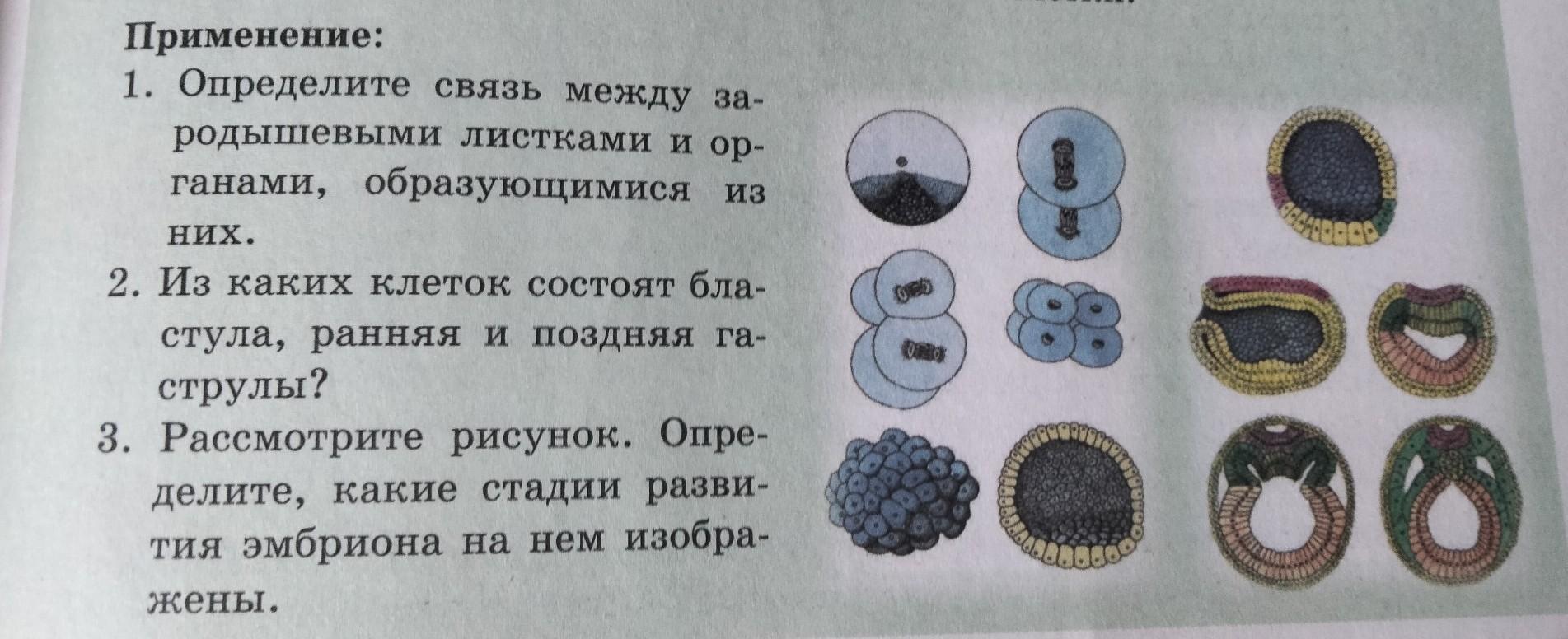 3. Рассмотрите рисунок. Определите, какие стадии развития эмбриона на нем изображены.