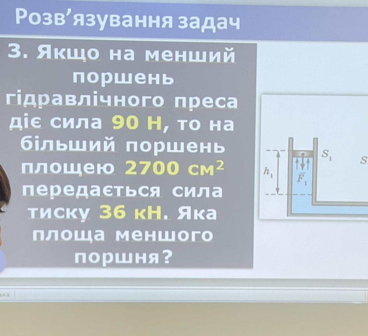 Сила, що діє на більший поршень, у стільки разів більша сили, яка діє на малий поршень, у скільки разів площа великого поршня більша площі малого.