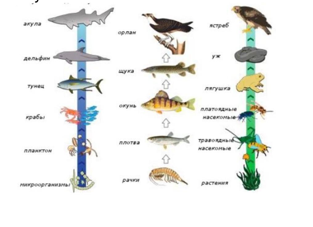 7. Рассмотрите рисунок. Составьте пищевые цепи. Укажите, какое звено пищевой цепи отсутствует в каждом случае?