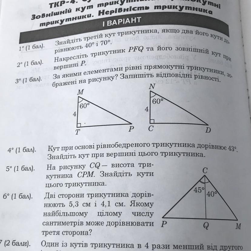 N3(1бал)За якими елементами рівні прямокутні трикутники, зображені на рисунку? Запишіть відповідні рівності.
