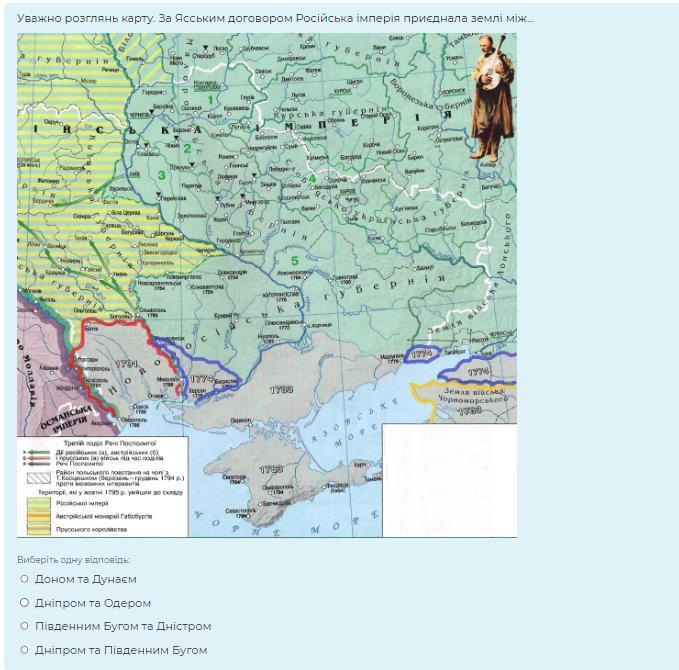 Уважно розглянь карту. За Ясським договором Російська імперія приєднала землі між...