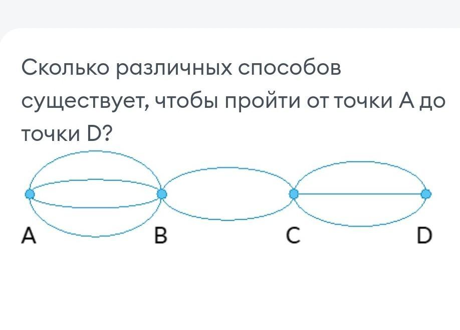 Сколько различных способов существует, чтобы пройти от точки А до точки D? A В с D