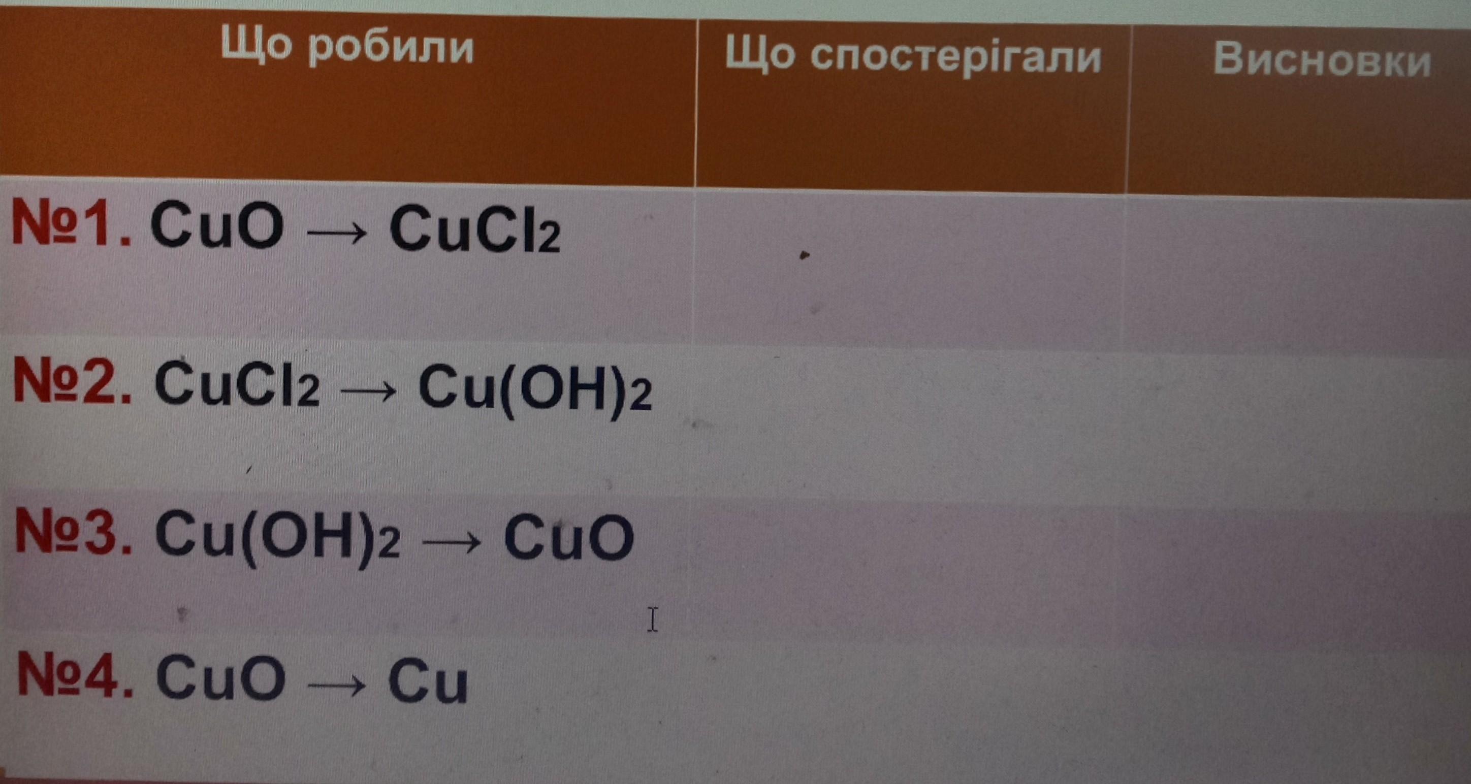 Завдання: здійснення реакцій за схемою хімічних перетворень.