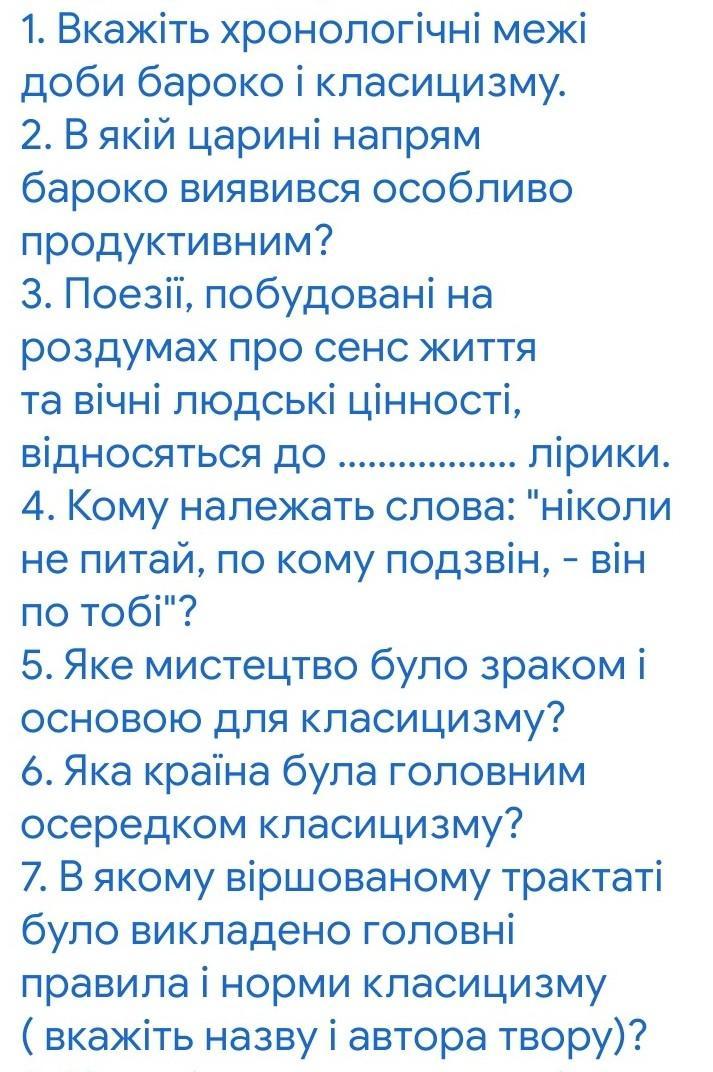 1. Вкажіть хронологічні межі доби бароко і класицизму. 2. В якій