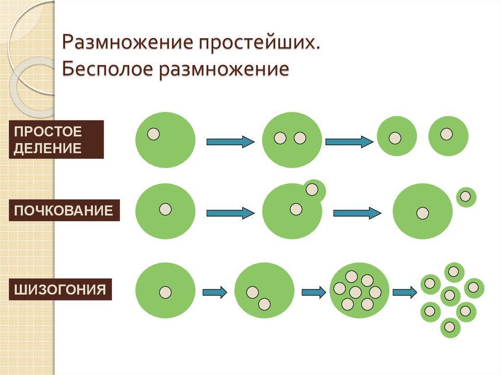 - шизогония - из одной клетки образуется более двух дочерних клеток (множественное деление)