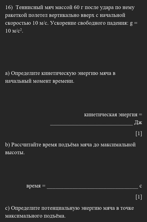 a) mV^2/2= 6 Джоулей. b) mV^2/2=mgh, t = 100/10=10 секунд. c) mV^2/2=mgh=6 Джоулей