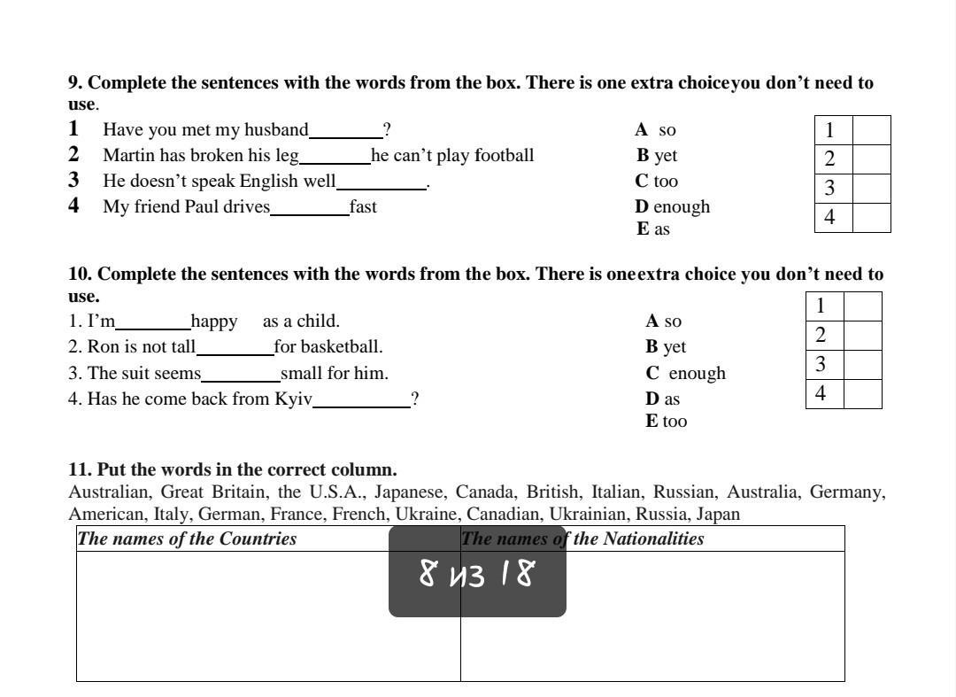 2 : Australian, Japanese, British, Italian, russian, American, French, Canadian, Ukrainian