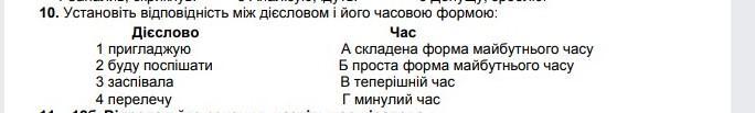 Установіть вiдповiднiсть мiж дієсловом і його часовою формою: