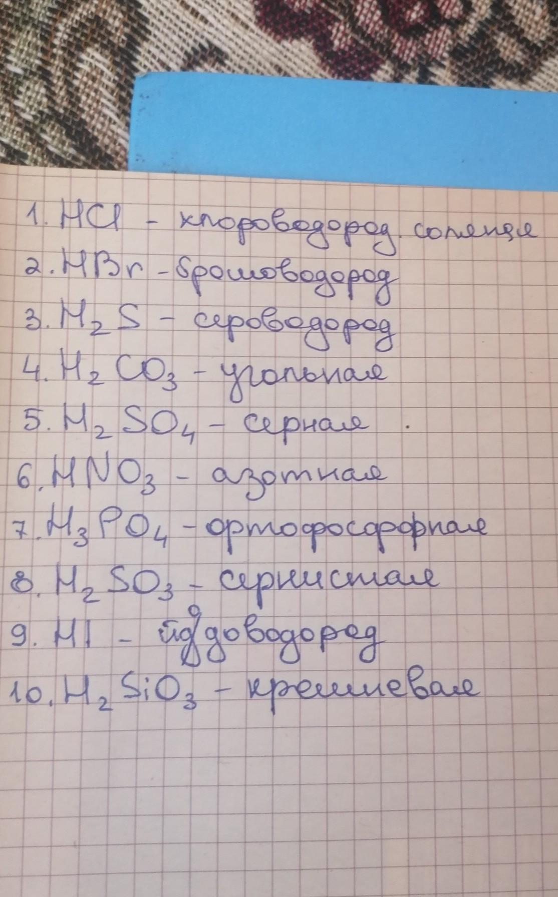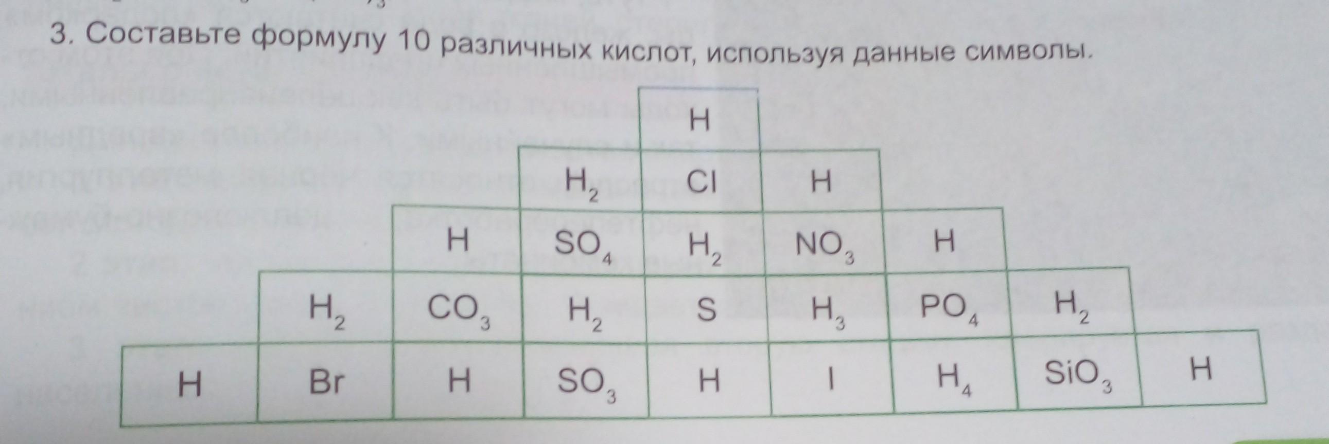 3. Составьте формулу 10 различных кислот, используя данные символы: