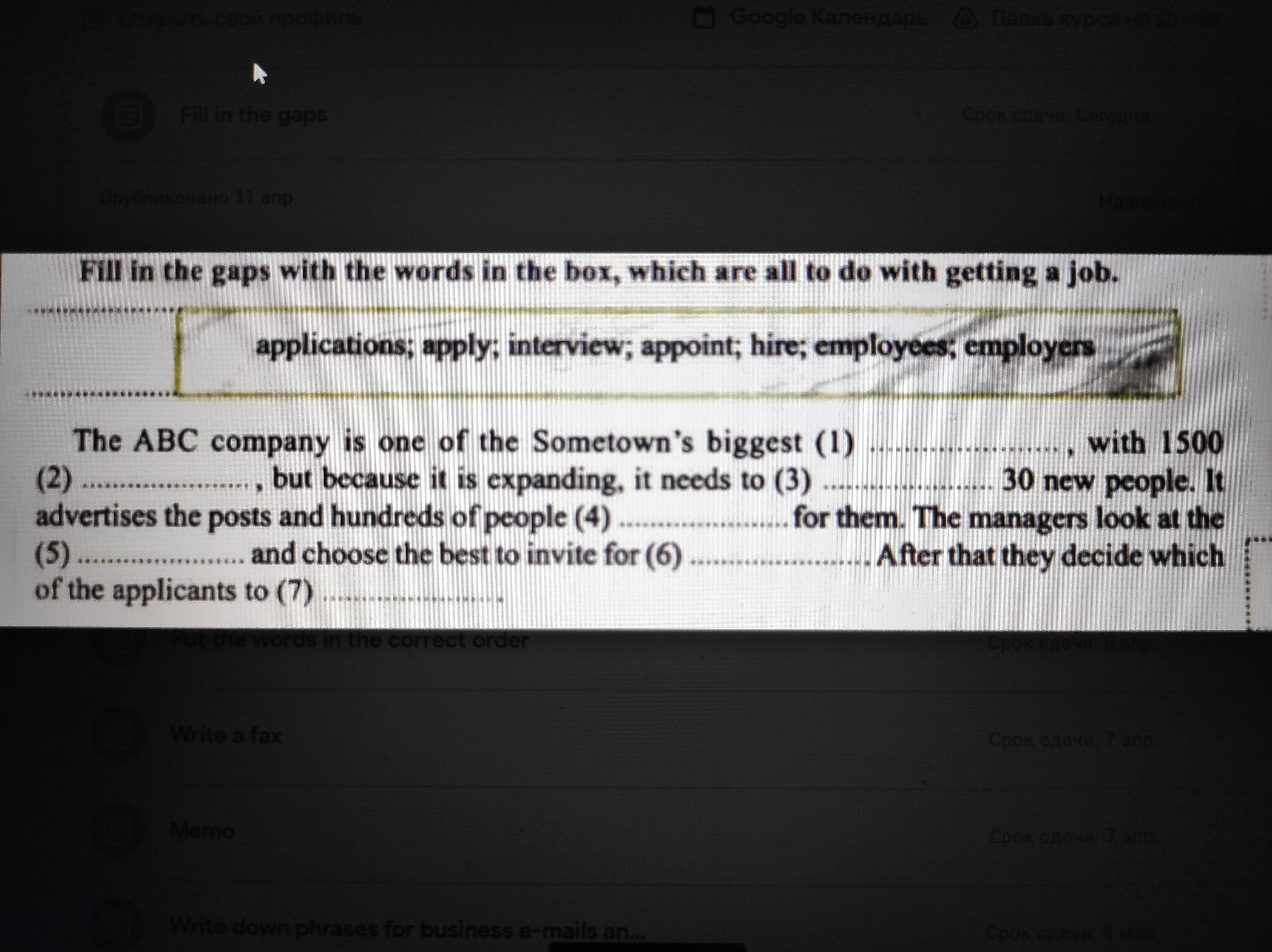 Fill in the gaps with the words in the box, which are all to do with getting a job. Очень нужна помощь!