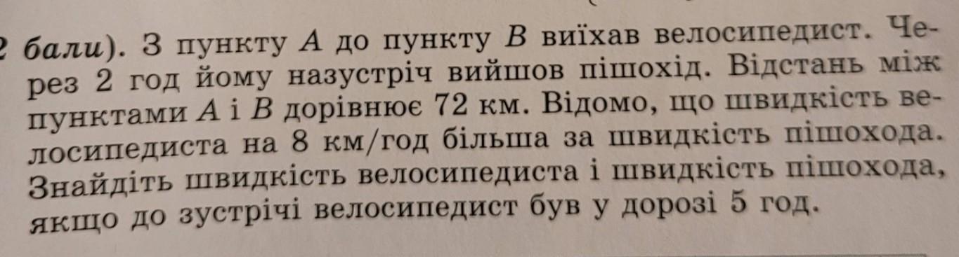 Пускай скорость велосипедиста - х км/ч, а скорость пешехода - у км/ч.