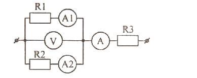 Амперметр А1 показує 1 А (див.рис.). Які покази вольтметра й амперметрів А2 і А, якщо опори резисторів R1=4 Ом, R2 = 6 Ом? Відповідь надайте у вольтах та амперах, які розделені комою.