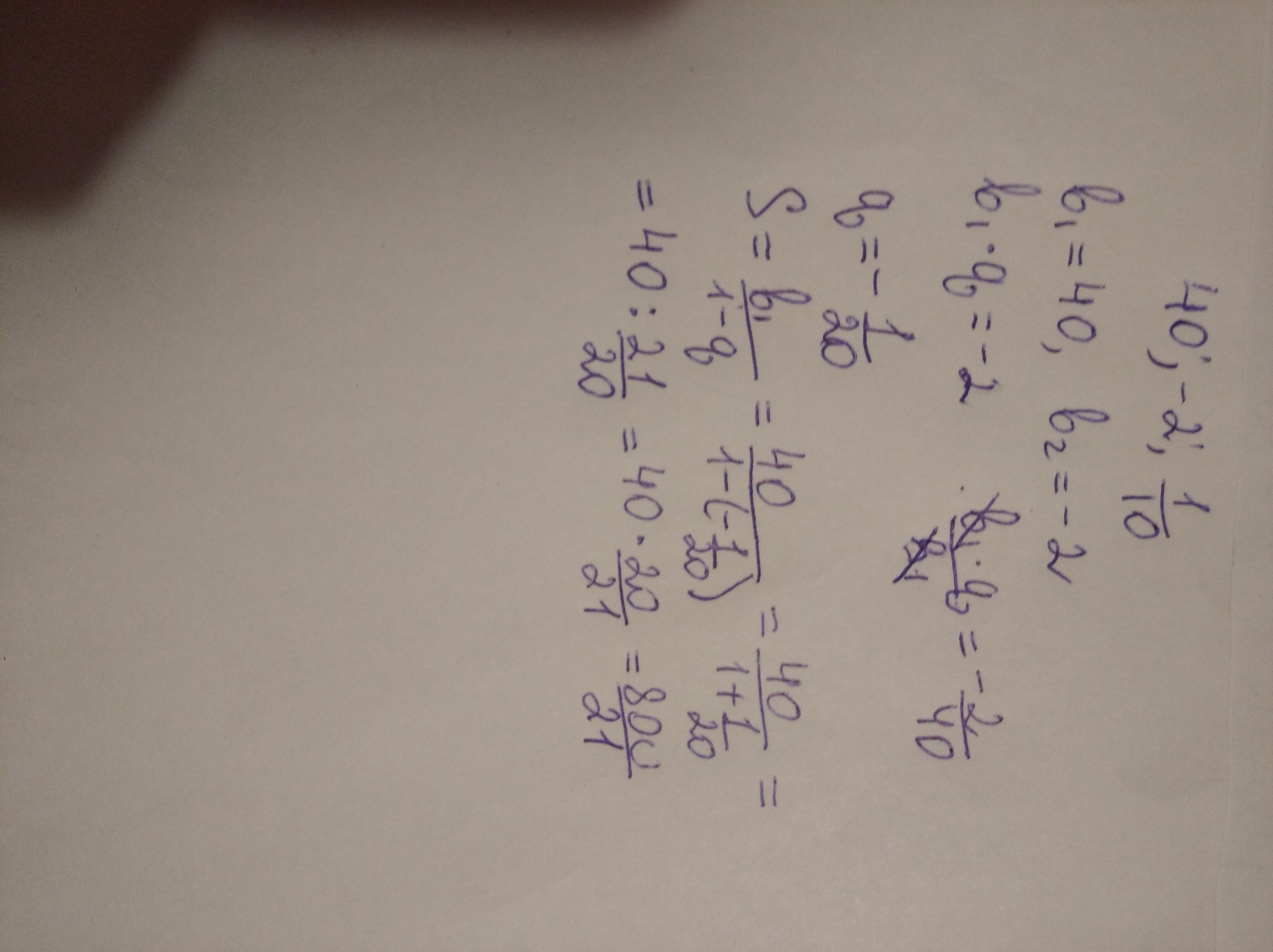 Знайдіть суму нескінченної геометричної прогресії 40; -2; 1/10..