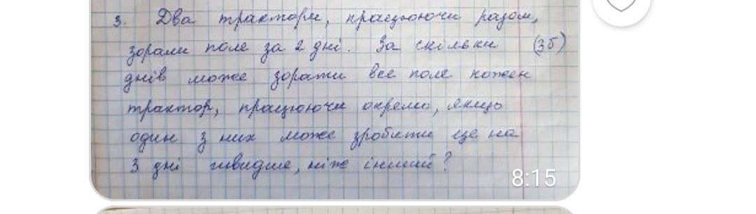В - дь : І тракт. за 3 дні , а ІІ тракт. за 6 днів .