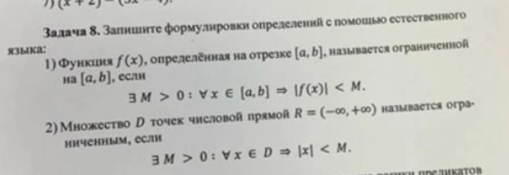 Существует M больше 0 такое, что для любого x принадлежащему множеству D следует, что абсолютное значение x строго меньше M.