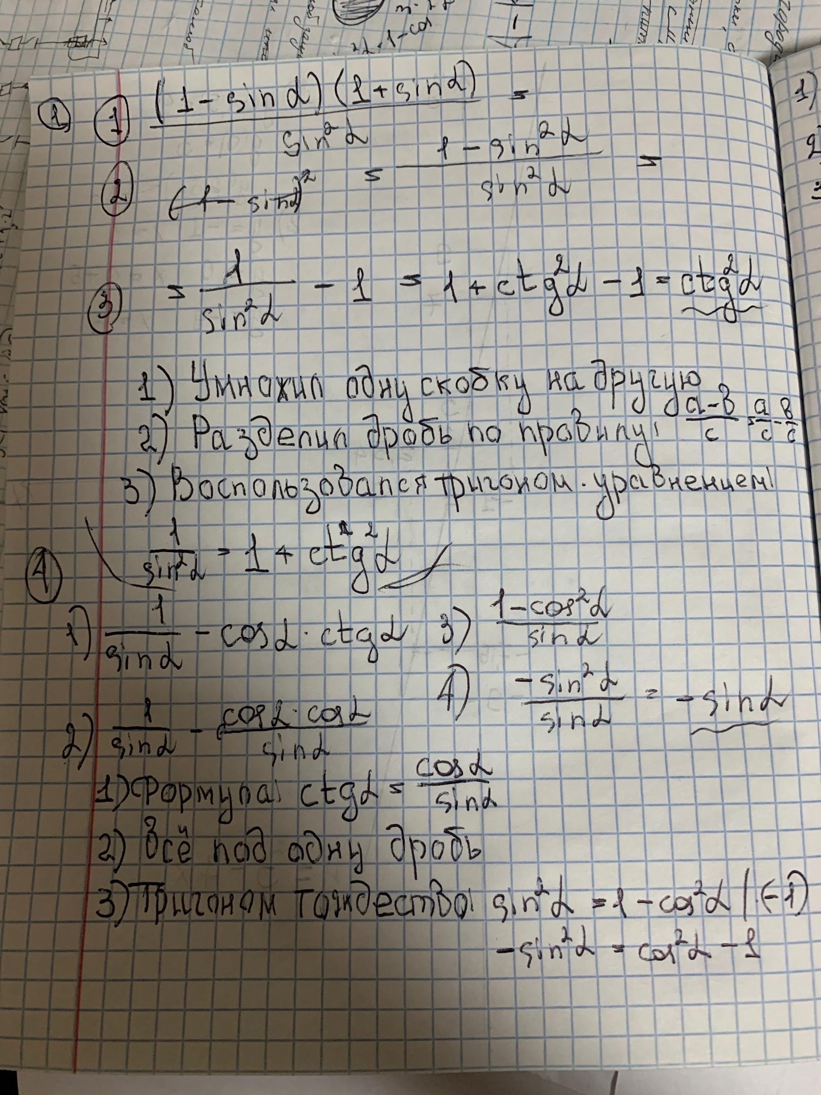 Все преобразования строятся вокруг основного тригонометрического тождества