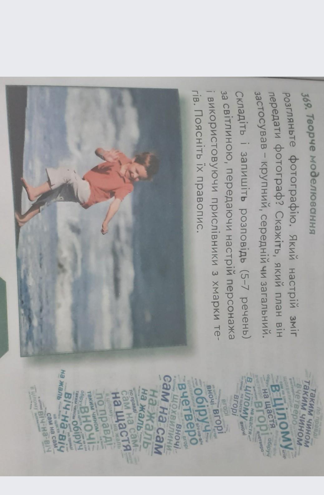 Хлопчик біжить берегом/піском, і посміхається. На картине нарисованно на фоне пляж