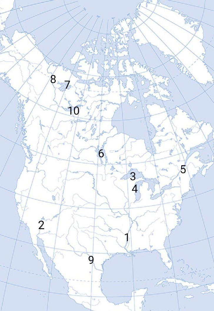 Самое большое по площади озеро - Верхнее, а самое глубокое - Большое Невольничье. Самая длинная река - Миссисипи.
