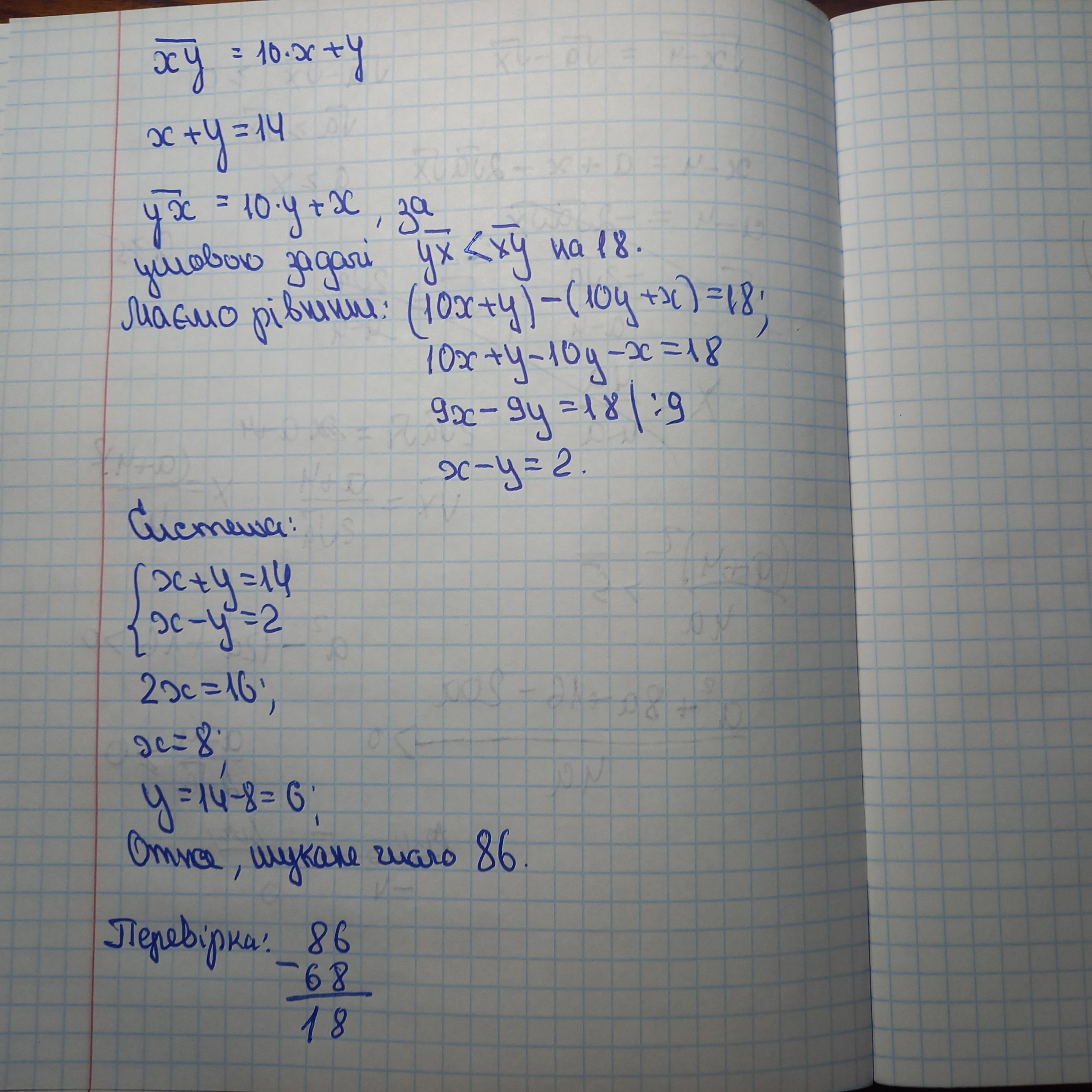 Сума цифр двозначного числа дорівнює 14. Якщо його цифри поміняти мiсцями.