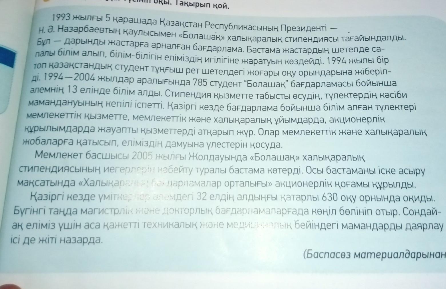 Қазақстан Республикасы, президент, Н.Ә.Назарбаев, болашақ, стипендия, жастар, бағдарлама, бастама, шетел, студент, оқу орындары, әлем, ел, қызмет, табыс, түлек, ұйымдар, құрылым, жоба, мемлекет, басшы, мақсат, үміткерлер, техника, медицина.
