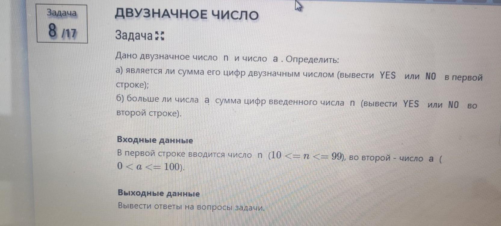 print(('NO', 'YES')[n // 10 + n % 10 > a])