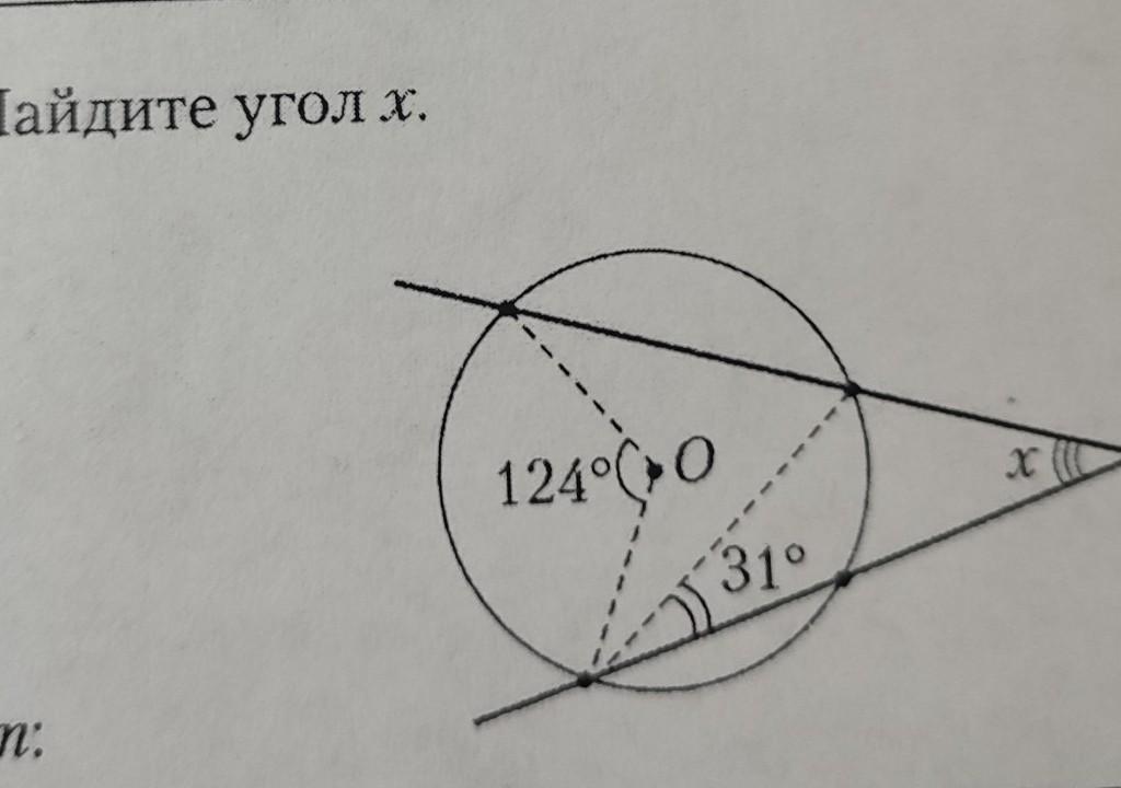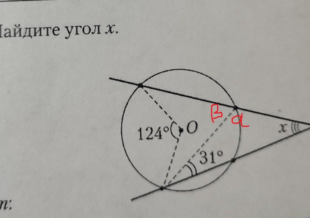 Угол α вписанный, а угол О центральный ⇒ Угол О = 124°