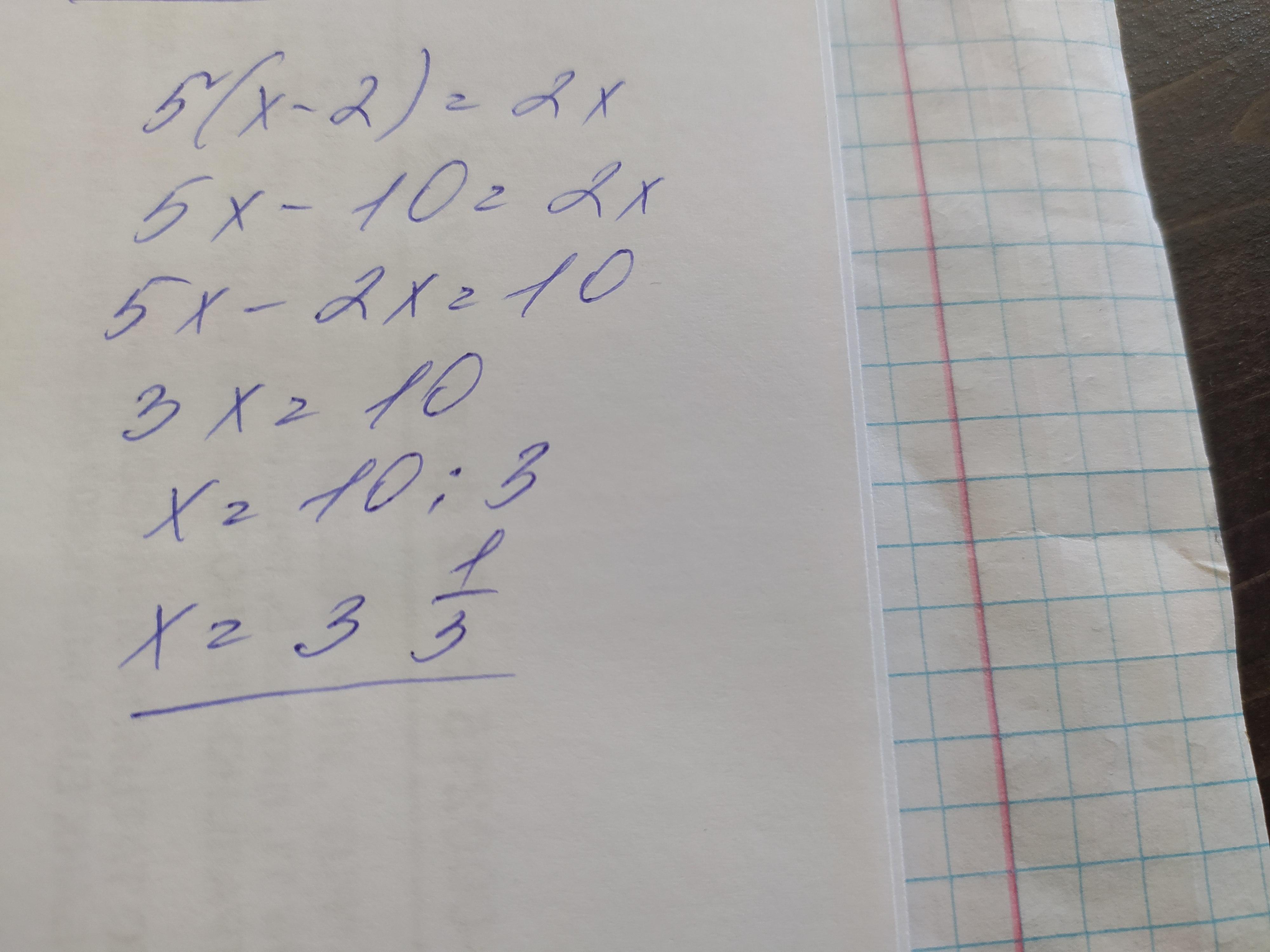5x - 2x = 10 (переносим все переменные с x на левую сторону уравнения, а числа на правую сторону)