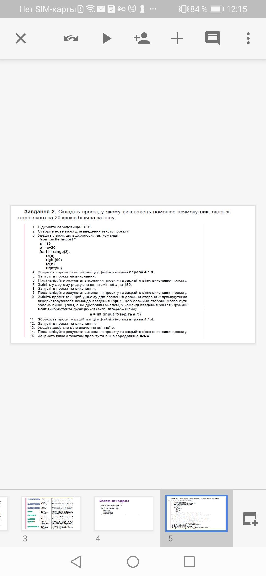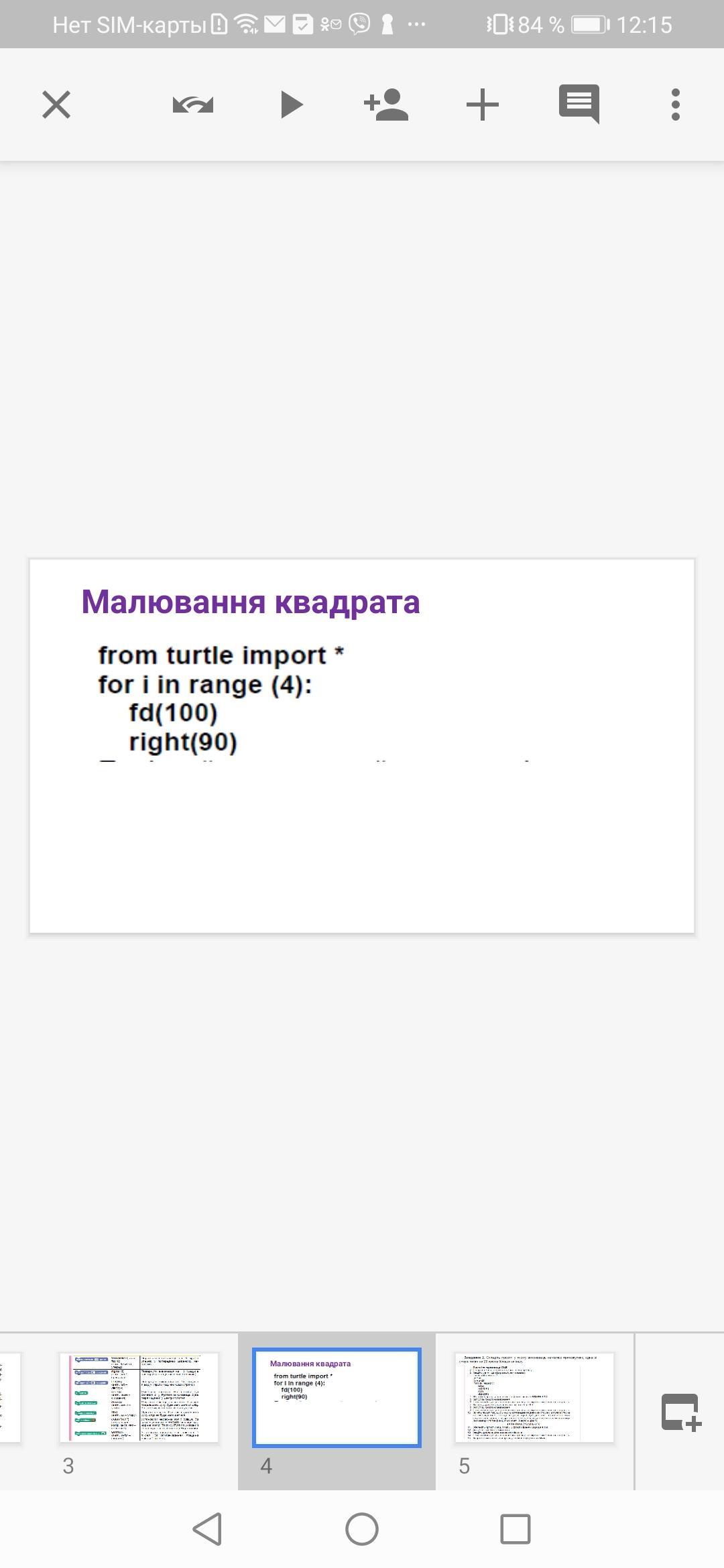 Таким чином, цей код малює квадрат, обертаючи черепашку на 90 градусів у кожному куті, тобто створюючи кут в 90 градусів між кожною стороною.