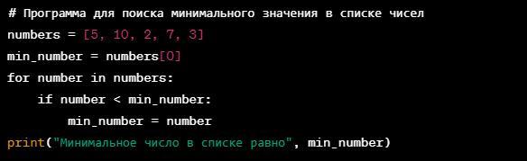 Здесь переменная number является субъектом цикла и используется для перебора элементов списка numbers. Переменная min_number инициализируется первым элементом списка, а затем в цикле происходит проверка каждого элемента списка на то, является ли он меньше текущего значения min_number. Если это так, то значение min_number обновляется на текущее значение элемента.