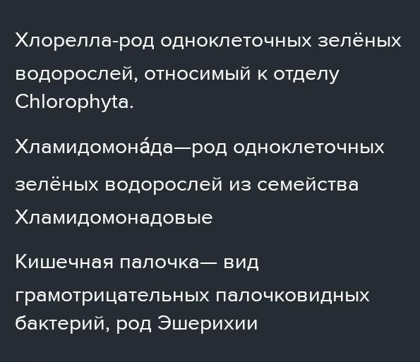 какое родство у хлореллы ,у хламидомонады и у кишечной палочки