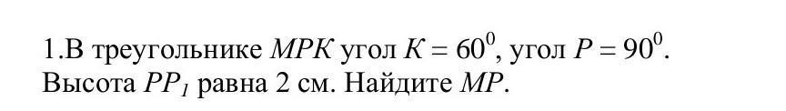Высота PP¹ равна 2 см. Найдите MP.