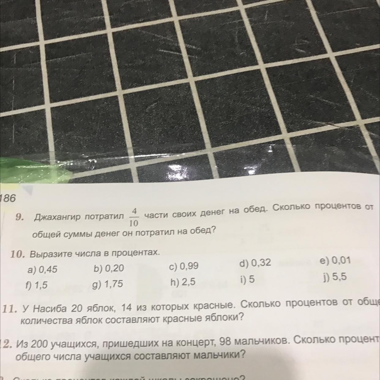 4 / 10 = 40 / 100 = 40% - суммы потратил на обед Джахангир.