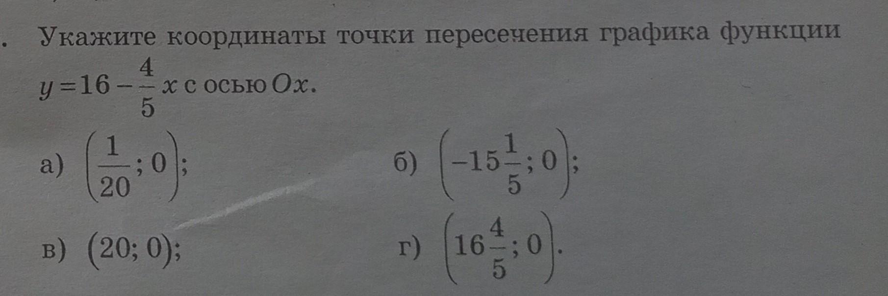 Подставим в функцию значение y = 0 и найдём абсциссу точки пересечения , то есть найдём x .