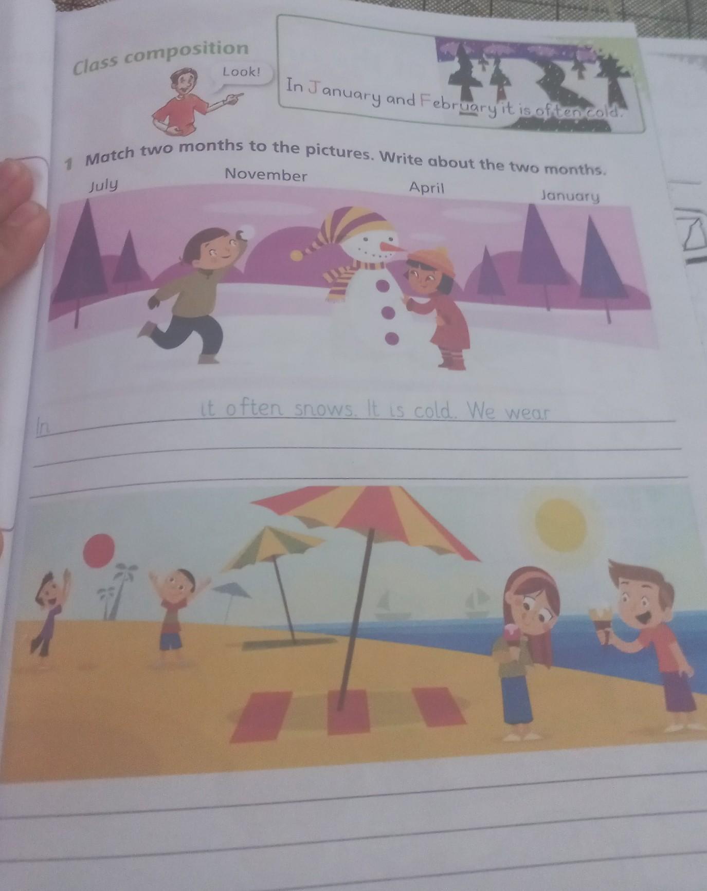 Так как в первом говорится что идёт снег и это будет декабрь ,а во втором изображено лето и это будет Июнь