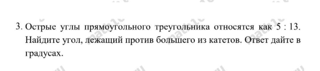 пусть х одна часть, тогда 5х один угол, 13х второй угол. Сумма острых углов в прямоугольном треугольнике равна 180-90=90 град. Составим уравнение