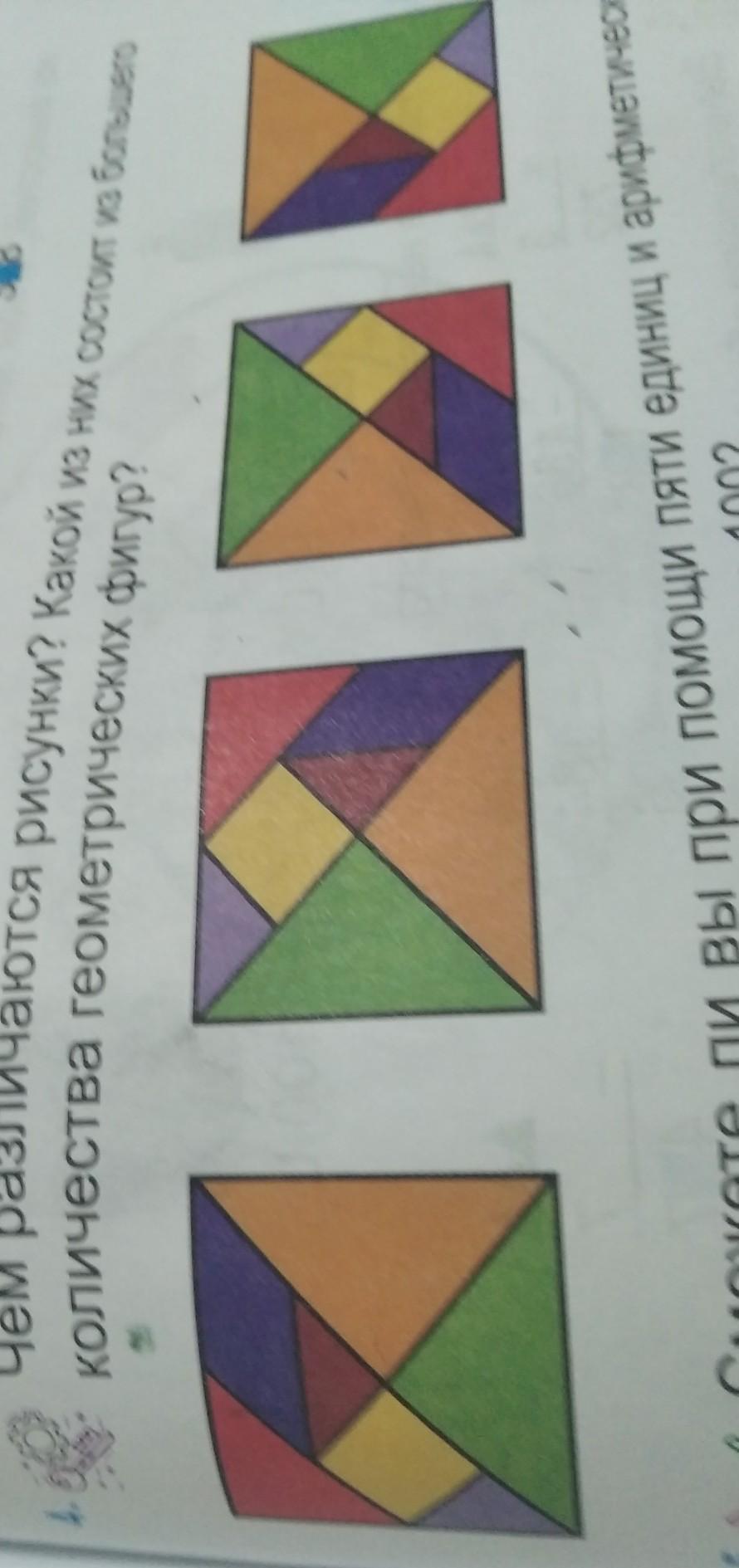 Чем различаются рисунки? Какой из них состоит из большего количества геометрических фигур? номер 4 ,извините за качество фото