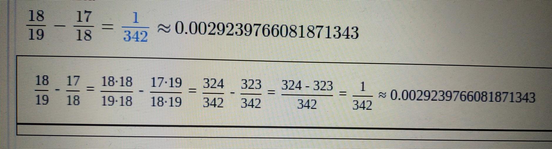 Сравнить. Дробь 18/19 больше чем 17/18 на сколько?