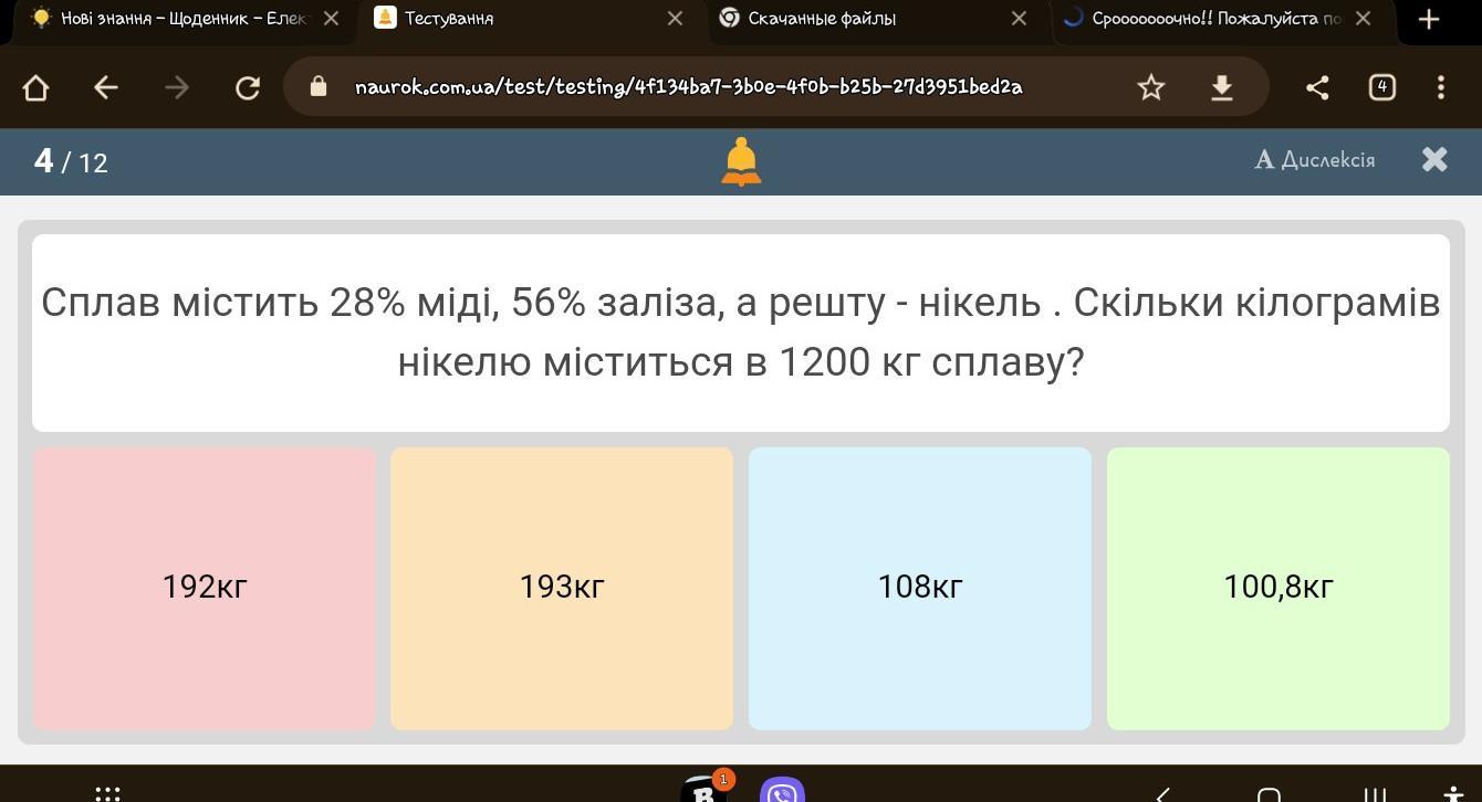1200*16%=1200*0.16=192 кг нікелю міститься в сплаву