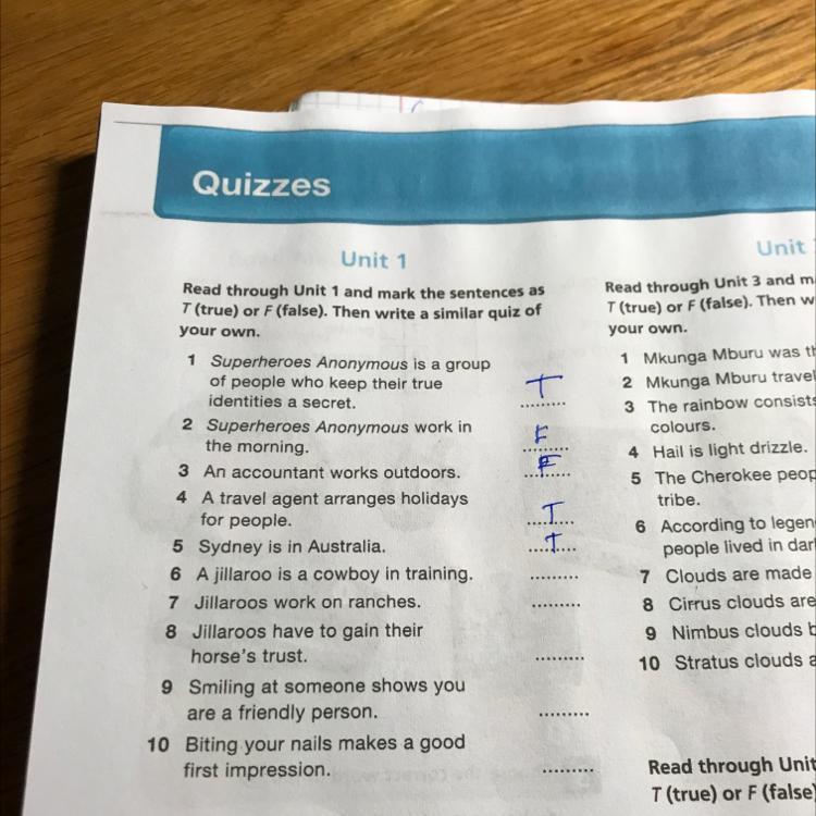 Read through Unit 1 and mark the sentences as
