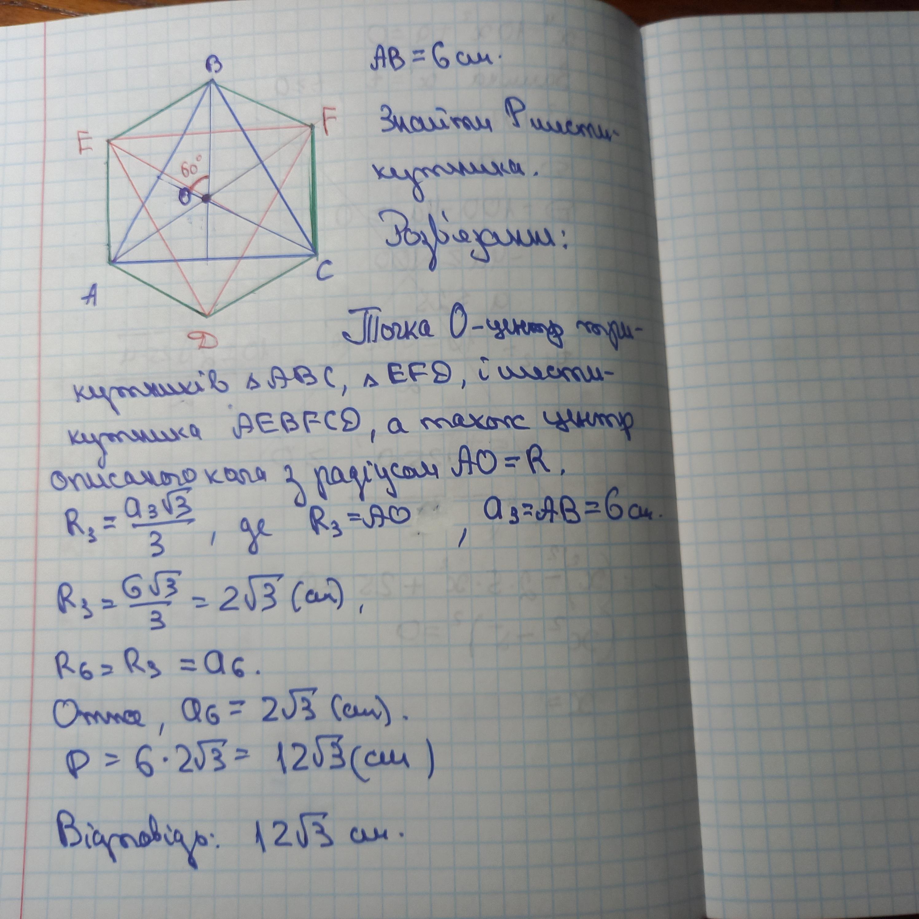 Знайдіть периметр шестикутника, вершинами якого є вершини даного і утвореного