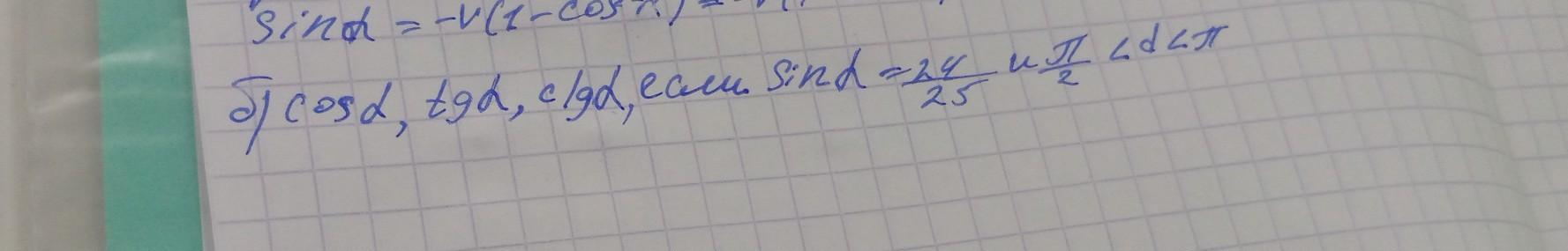 Ответ: cos d = - 7/25 , tg d = -24/7 , ctg d = -7/24