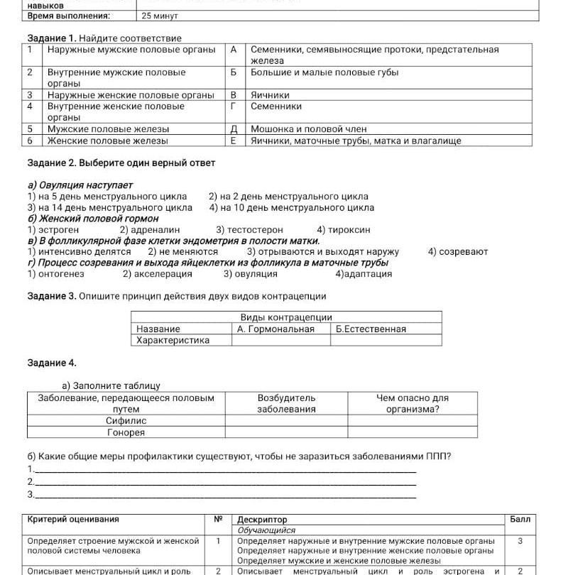 Задание 3. Опишите принцип действия двух видов контрацепции