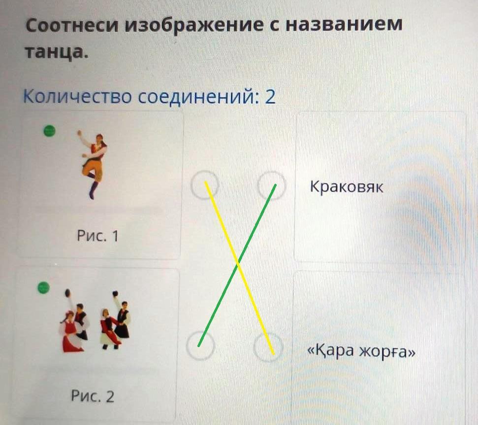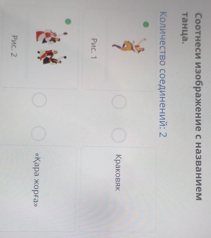 Соотнеси изображение с названием танца. Количество соединений: 2 Рис. 1 Рис. 2 Краковяк «Кара жорга>>